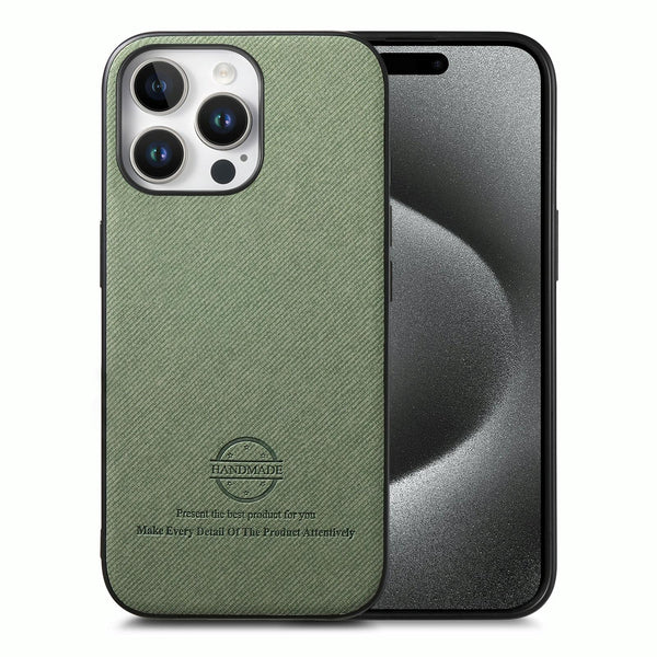 For iPhone 15 Pro Twill Fabric Leather Skin Back Phone Case(Green)