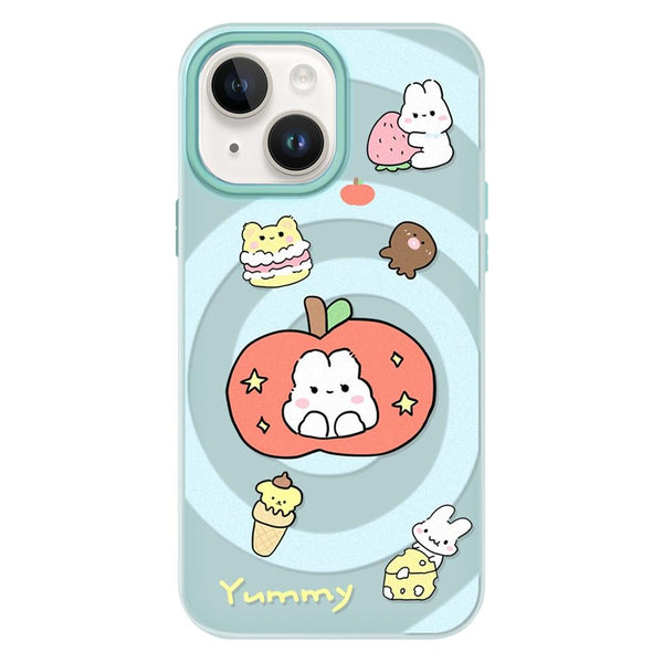 For iPhone 15 Skin Feeling Jelly TPU Hybrid PC Phone Case(Apple Rabbit Yellow Light Green)