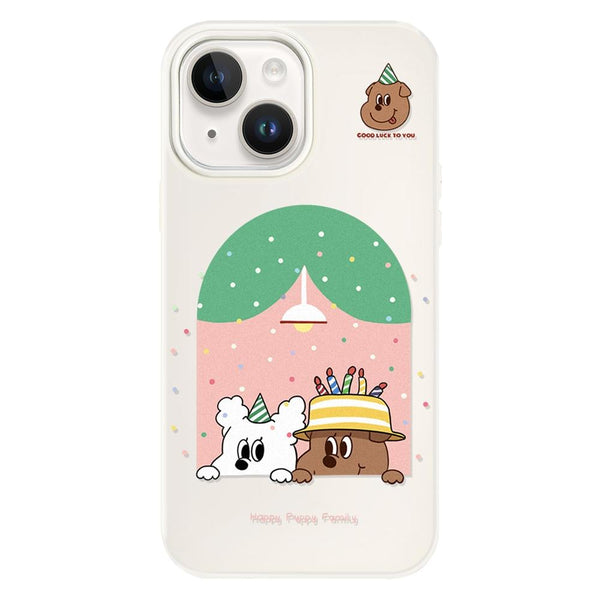 For iPhone 15 Skin Feeling Jelly TPU Hybrid PC Phone Case(Birthday Puppy Beige)