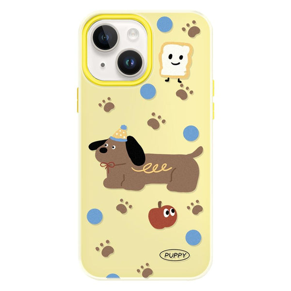 For iPhone 15 Skin Feeling Jelly TPU Hybrid PC Phone Case(Brown Puppy Yellow)