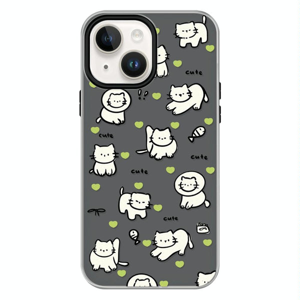 For iPhone 15 Skin Feeling Jelly TPU Hybrid PC Phone Case(Green Heart Cat Black)