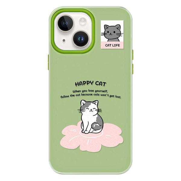 For iPhone 15 Skin Feeling Jelly TPU Hybrid PC Phone Case(Happy Cat Green)