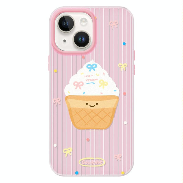 For iPhone 15 Skin Feeling Jelly TPU Hybrid PC Phone Case(Ice Cream Polka Dot Pink)