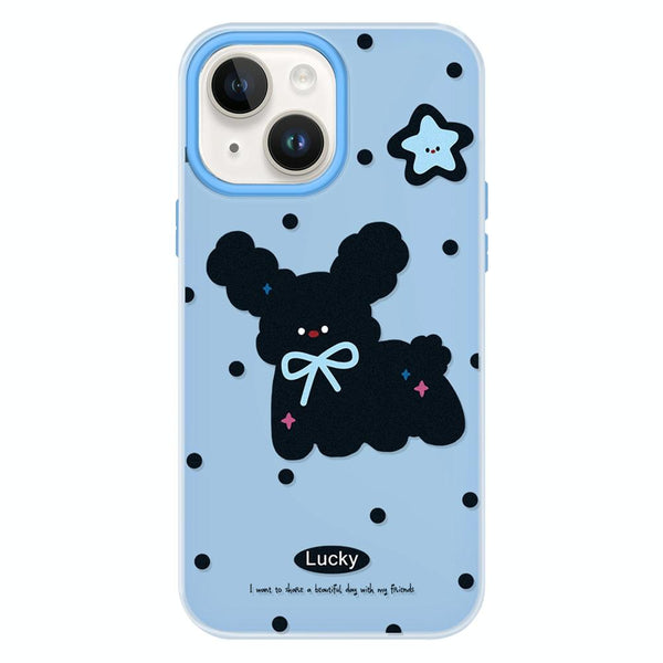 For iPhone 15 Skin Feeling Jelly TPU Hybrid PC Phone Case(Little Black Dog Blue)