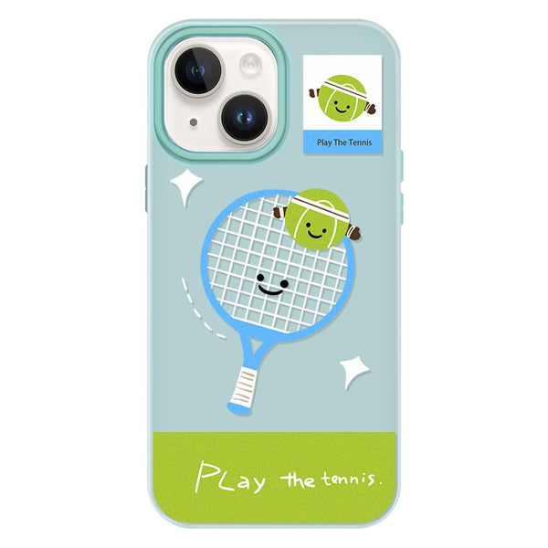 For iPhone 15 Skin Feeling Jelly TPU Hybrid PC Phone Case(Play Tennis Light Green)