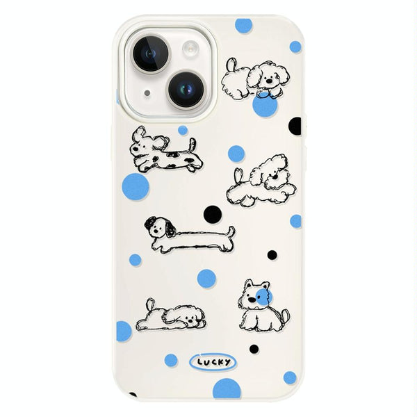 For iPhone 15 Skin Feeling Jelly TPU Hybrid PC Phone Case(Polka Dot Puppy White)