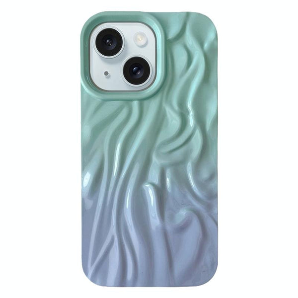 For iPhone 15 Wrinkle Gradient Oily Feel TPU Phone Case(Green Purple)