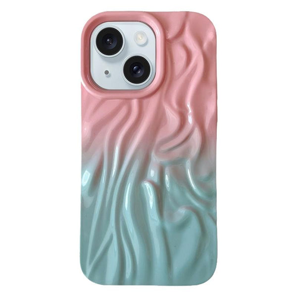 For iPhone 15 Wrinkle Gradient Oily Feel TPU Phone Case(Pink Green)