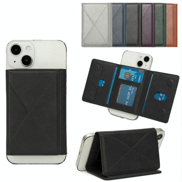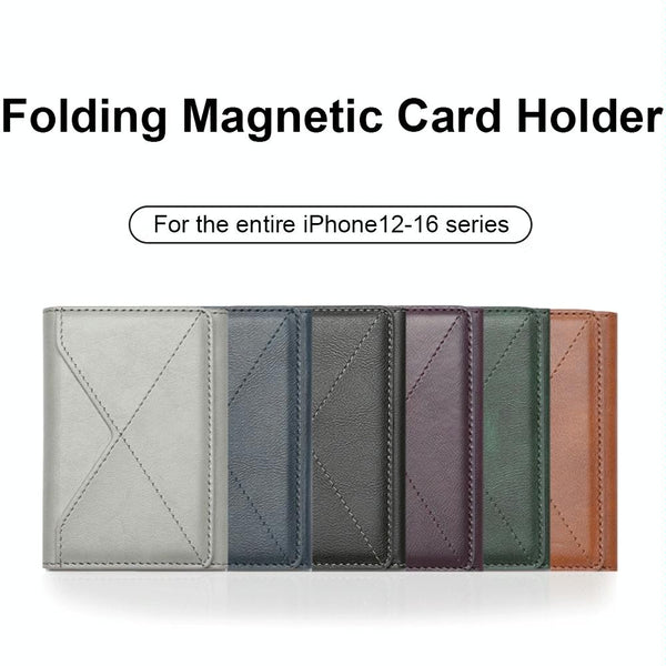 For IPhone 16 / 15 / 14 / 13 Series MagSafe Wallet Three-Fold Card Holder With Stand(Dark Blue)