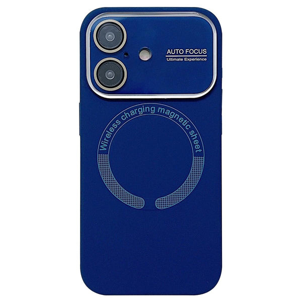 For iPhone 16 Large Window Acrylic Glass Lens MagSafe Silicone Phone Case(Navy Blue)