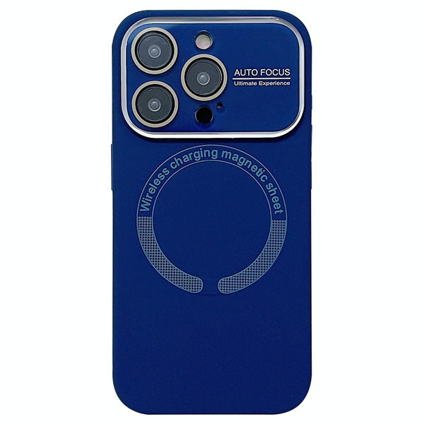 For iPhone 16 Pro Large Window Acrylic Glass Lens MagSafe Silicone Phone Case(Navy Blue)