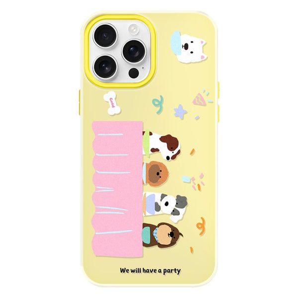 For iPhone 16 Pro Max Skin Feeling Jelly TPU Hybrid PC Phone Case(Dog Party Yellow)
