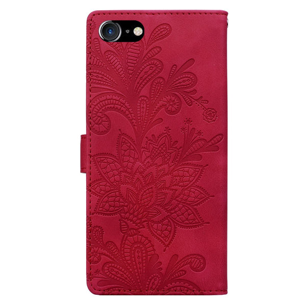 For iPhone 6 Plus / 7 Plus / 8 Plus Lace Floral Embossed Magnetic Buckle Leather Phone Case(Red)