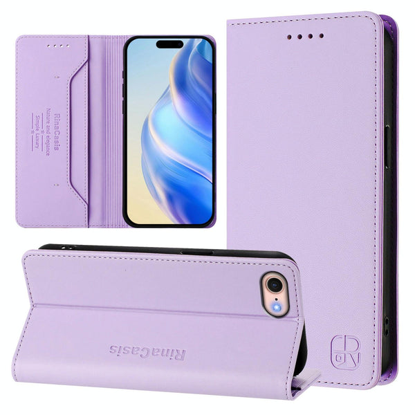 For iPhone 7 / 8 / SE 2022 RC01 Dual-Folded Magnetic Suction RFID Leather Phone Case(Light Purple)