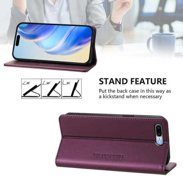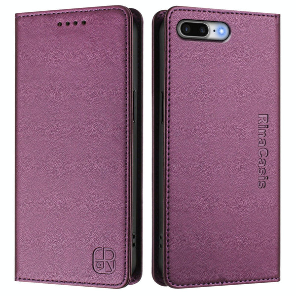 For iPhone 7 Plus / 8 Plus RC01 Dual-Folded Magnetic Suction RFID Leather Phone Case(Violet)