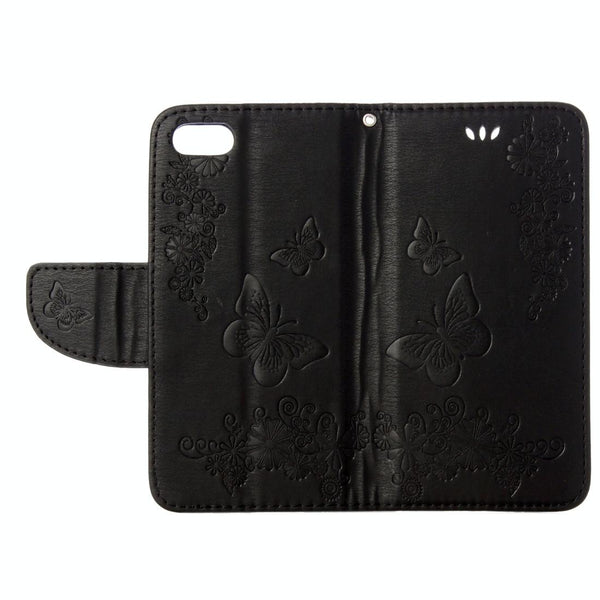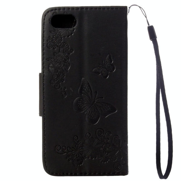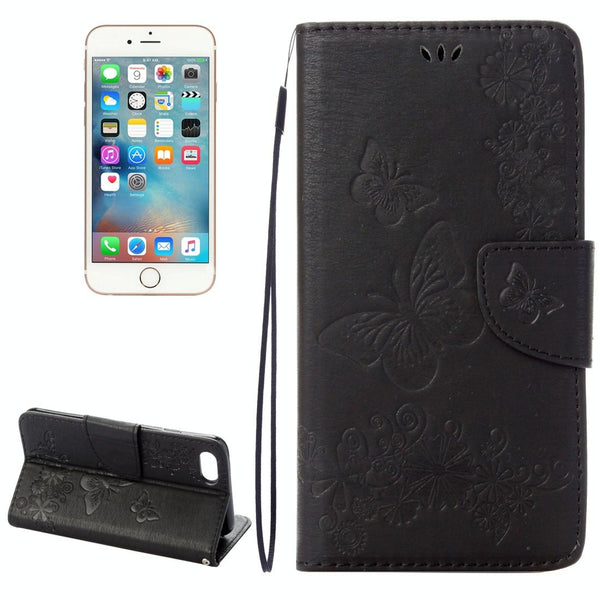 ForiPhone 8 & 7 Pressed Flowers Butterfly Pattern Horizontal Flip Leather Case with Holder & Card Slots & Wallet(Black)
