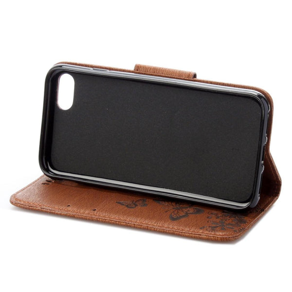 ForiPhone 8 & 7 Pressed Flowers Butterfly Pattern Horizontal Flip Leather Case with Holder & Card Slots & Wallet(Brown)
