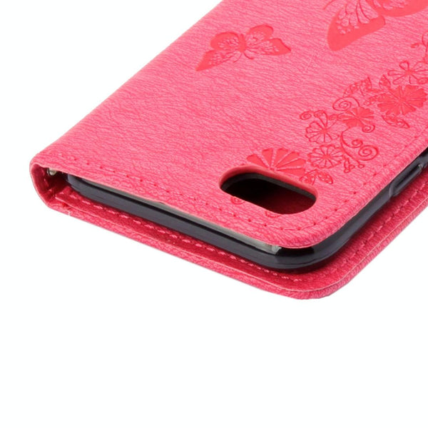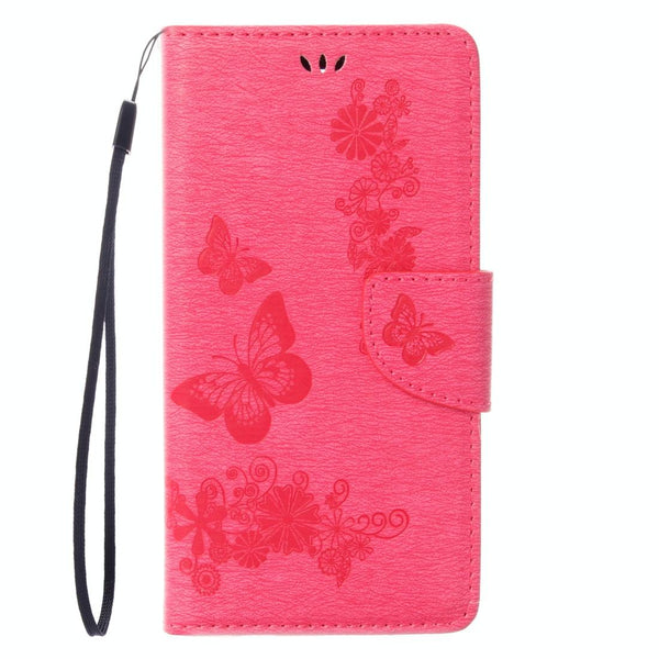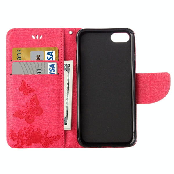 ForiPhone 8 & 7 Pressed Flowers Butterfly Pattern Horizontal Flip Leather Case with Holder & Card Slots & Wallet(Magenta)