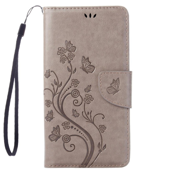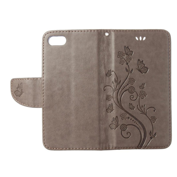 ForiPhone 8 & 7Pressed Flowers Horizontal Flip Leather Case with Holder & Card Slots & Wallet(Grey)