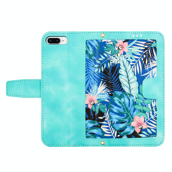 For iPhone 8 Plus / 7 Plus Floral Pattern Leather Phone Case with Lanyard(Green)