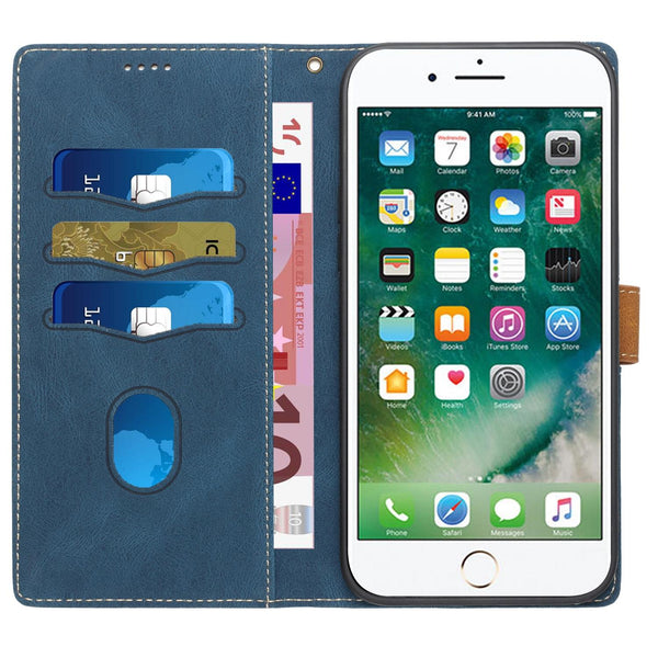 For iPhone 8 Plus / 7 Plus Grid Stitching Leather Phone Case with Lanyard(Blue)