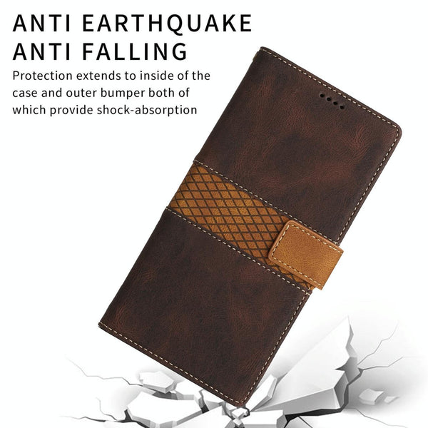 For iPhone 8 Plus / 7 Plus Grid Stitching Leather Phone Case with Lanyard(Brown)