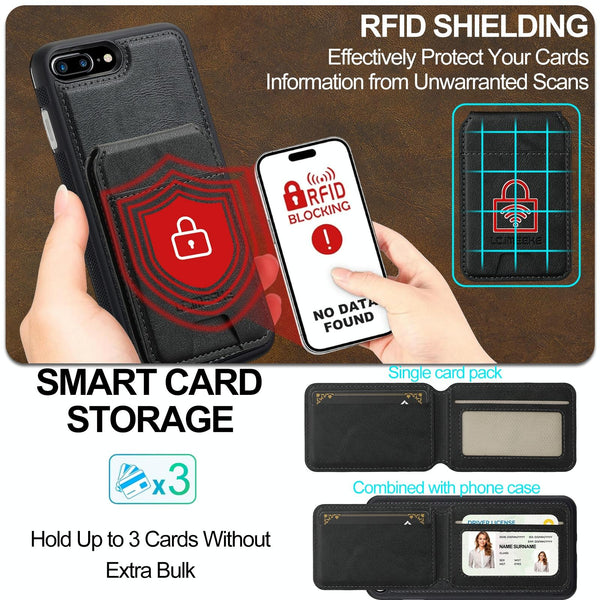 For iPhone 8 Plus / 7 Plus LC.IMEEKE L3 Series Detachable RFID Card Bag Magsafe Phone Case(Black)