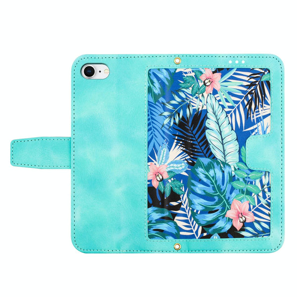 For iPhone SE 2022 / 2020 Floral Pattern Leather Phone Case with Lanyard(Green)