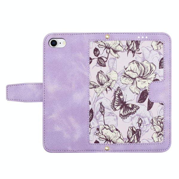 For iPhone SE 2024 Floral Pattern Leather Phone Case with Lanyard(Light Purple)