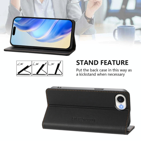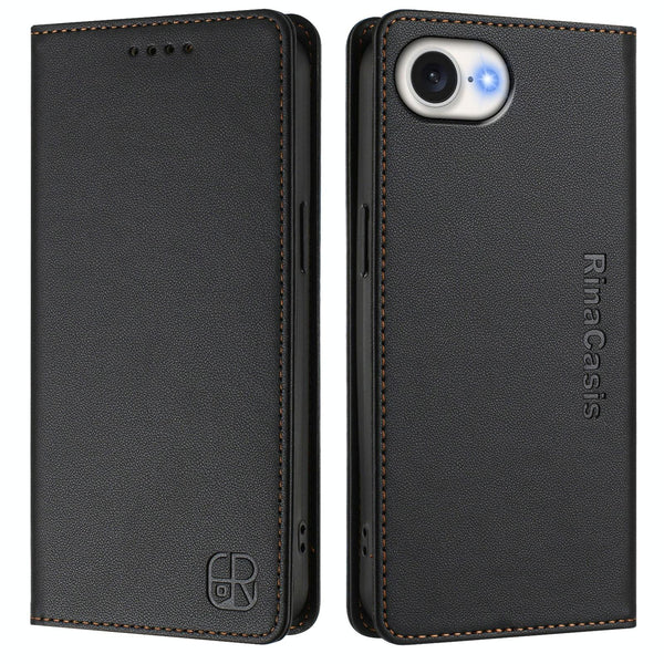 For iPhone SE 2024 RC01 Dual-Folded Magnetic Suction RFID Leather Phone Case(Black)