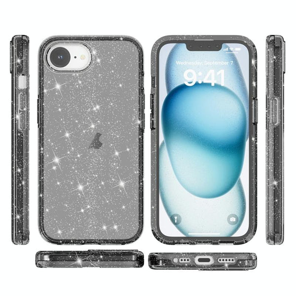 For iPhone SE 2024 Shockproof Terminator Glitter Powder Phone Case(Black)