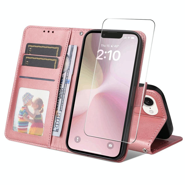 For iPhone SE 2025 ENKAY Card Wallet Calf Texture Leather Phone Case with Screen Film(Pink)