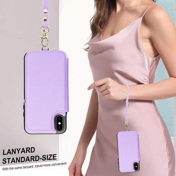 For iPhone X / XS Double Flap Zipper RFID Leather Phone Case with Short Lanyard(Light Purple)