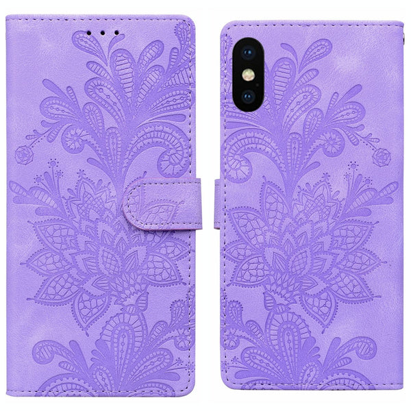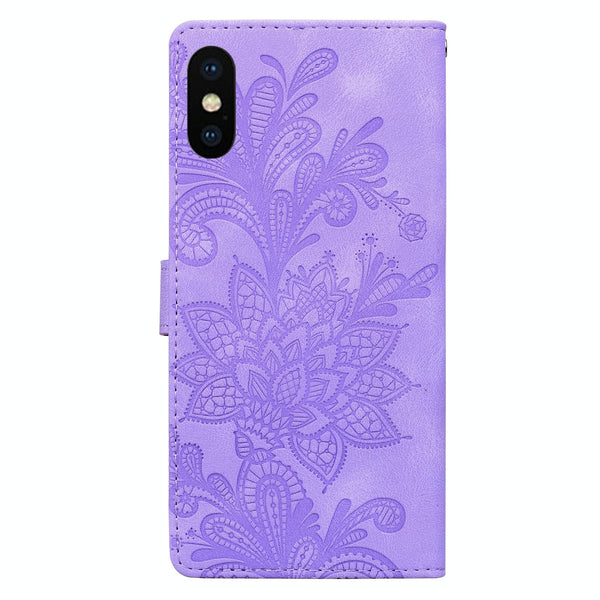 For iPhone X / XS Lace Floral Embossed Magnetic Buckle Leather Phone Case(Purple)