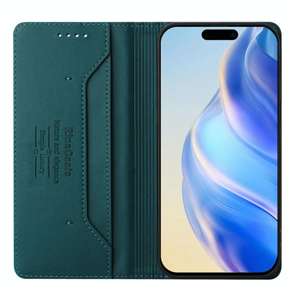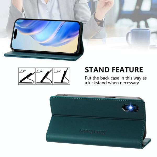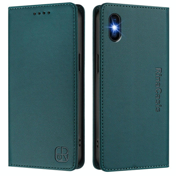 For iPhone X / XS RC01 Dual-Folded Magnetic Suction RFID Leather Phone Case(Dark Green)