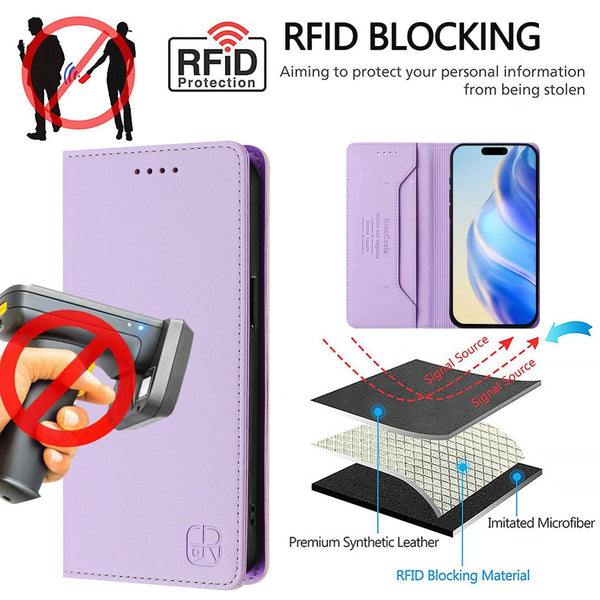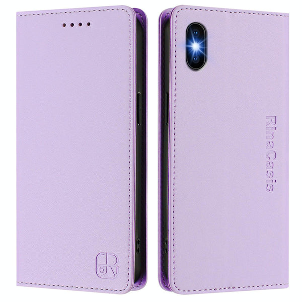 For iPhone X / XS RC01 Dual-Folded Magnetic Suction RFID Leather Phone Case(Light Purple)