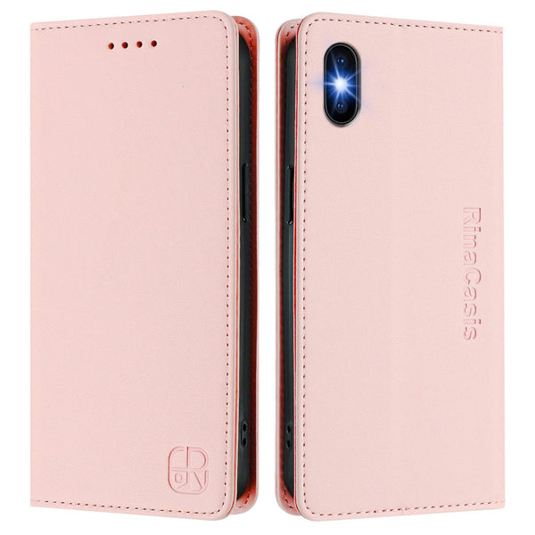 For iPhone X / XS RC01 Dual-Folded Magnetic Suction RFID Leather Phone Case(Pink)