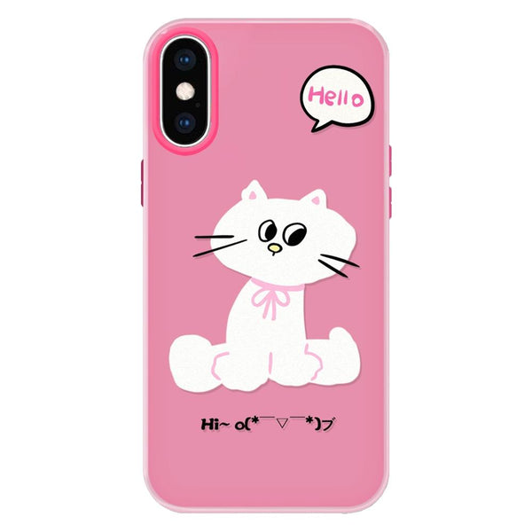 For iPhone X / XS Skin Feeling Jelly TPU Hybrid PC Phone Case(Bow White Cat Rose Red)