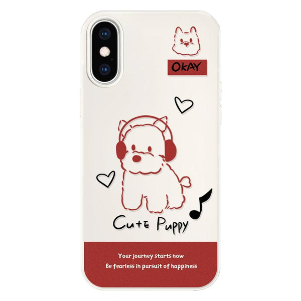 For iPhone X / XS Skin Feeling Jelly TPU Hybrid PC Phone Case(Earphones Dog White)
