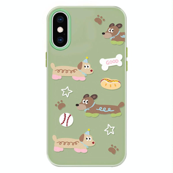 For iPhone X / XS Skin Feeling Jelly TPU Hybrid PC Phone Case(Long Dog Green)