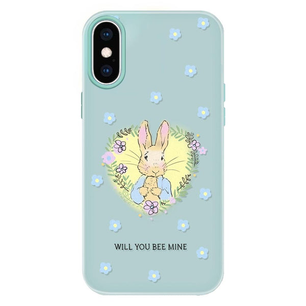 For iPhone X / XS Skin Feeling Jelly TPU Hybrid PC Phone Case(Love Flower Rabbit Light Green)