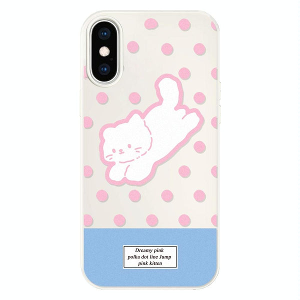 For iPhone X / XS Skin Feeling Jelly TPU Hybrid PC Phone Case(Polka Dot Kitten White)