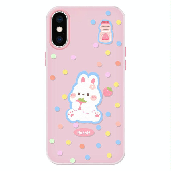 For iPhone X / XS Skin Feeling Jelly TPU Hybrid PC Phone Case(Polka Dot Rabbit Pink)