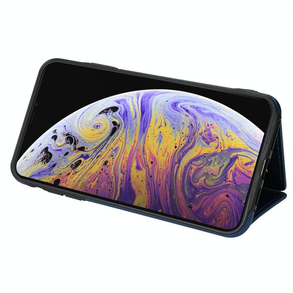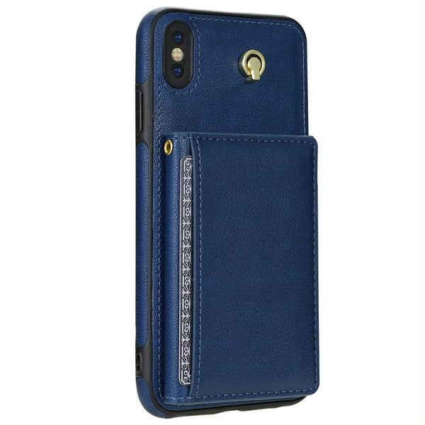 For iPhone X / XS Three Fold Card Bag Phone Case with Long Lanyard(Blue)