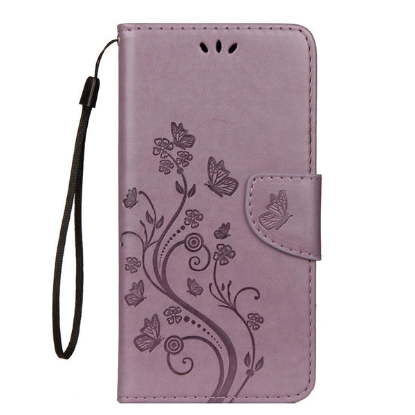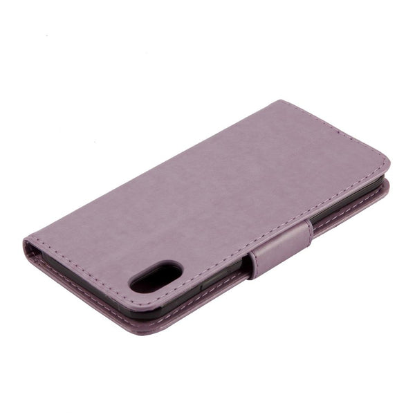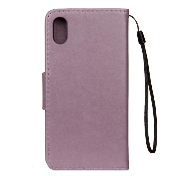 For iPhone XR Embossed Butterfly Pattern Horizontal Flip Leather Case with Card Slot & Holder & Wallet & Lanyard (Purple)