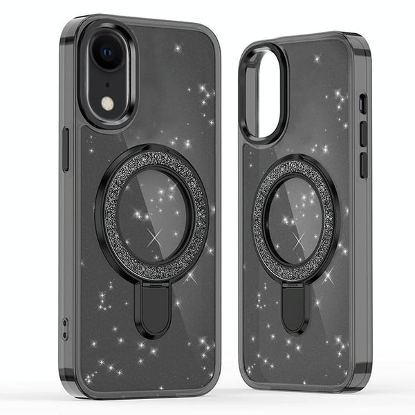 For iPhone XR Glitter Ring Holder MagSafe Phone Case(Black)