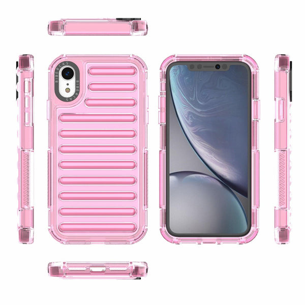 For iPhone XR High Transparency TPU Hybrid PC Airbag Phone Case(Pink)