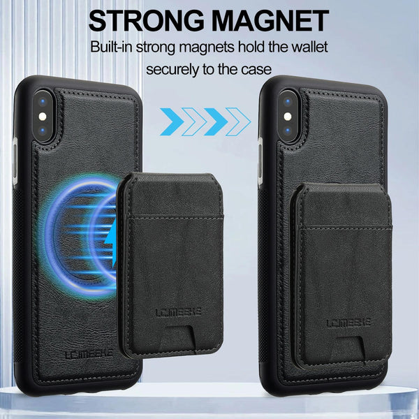 For iPhone XR LC.IMEEKE L3 Series Detachable RFID Card Bag Magsafe Phone Case(Black)