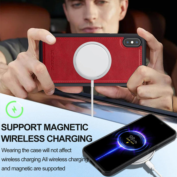 For iPhone XR LC.IMEEKE L3 Series Detachable RFID Card Bag Magsafe Phone Case(Red)
