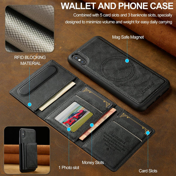 For iPhone XR LC.IMEEKE L5 Series Detachable RFID Card Bag Magsafe Phone Case(Black)